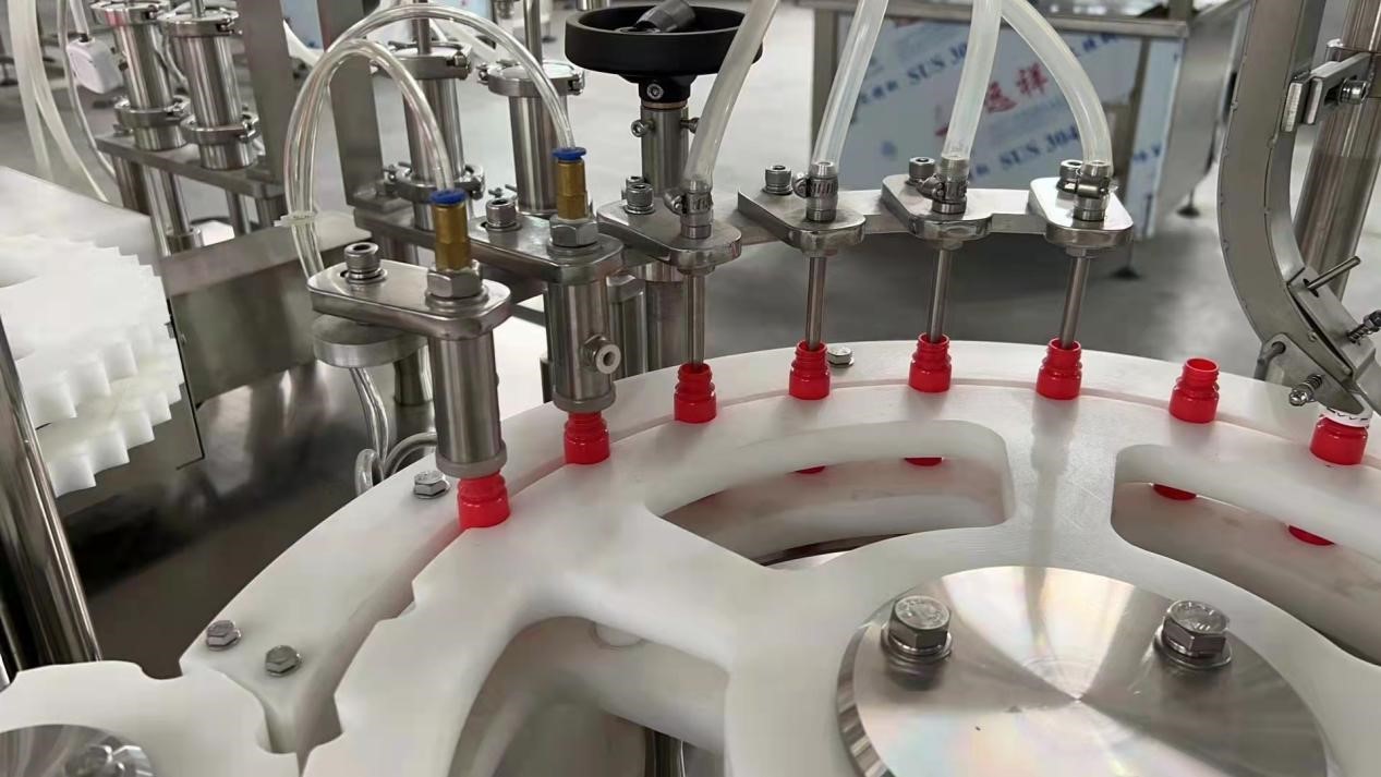 Эта машина в основном применима для бутылок с распылителем для завершения процесса автоматической упаковки. Бутылка передается с помощью машины для распаковки бутылок или машины для подачи бутылок через конвейерную ленту на малый циферблат, маленький циферблат на большой поворотный стол, в свою очередь полная промывка газа, наполнение , автоматическая головка насоса, автоматическая ротационная укупорка , с помощью другого маленького циферблата готовый продукт будет набираться на конвейерную ленту, с помощью конвейерной ленты к следующему производственному процессу..